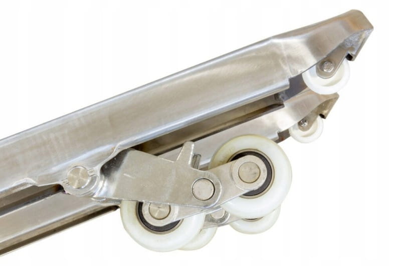 Przednie kółka oraz Rolki jezdne wykonane z są nylonu co zapewnia lekką pracę, niskie opory toczenia oraz powolne zużycie. Koła nylonowe są twardsze i bardziej wytrzymałe oraz znacznie tańsze w serwisowaniu.